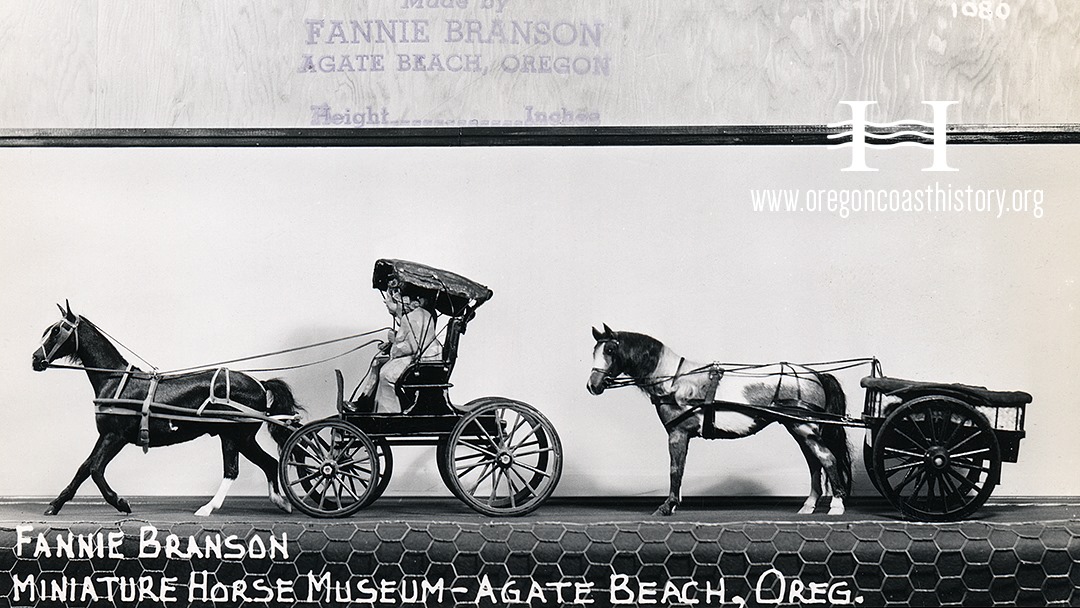 This accident didn’t slow her down. Fannie married Jay Branson in 1903 and by 1935 they were operating the nation’s first Roquefort cheese factory in Scio, Oregon. They later moved to Agate Beach where Branson started a business selling intricate miniature horses she carved by hand. They eventually opened a museum where Branson displayed her work, which in 1951 alone had over 6,000 visitors.